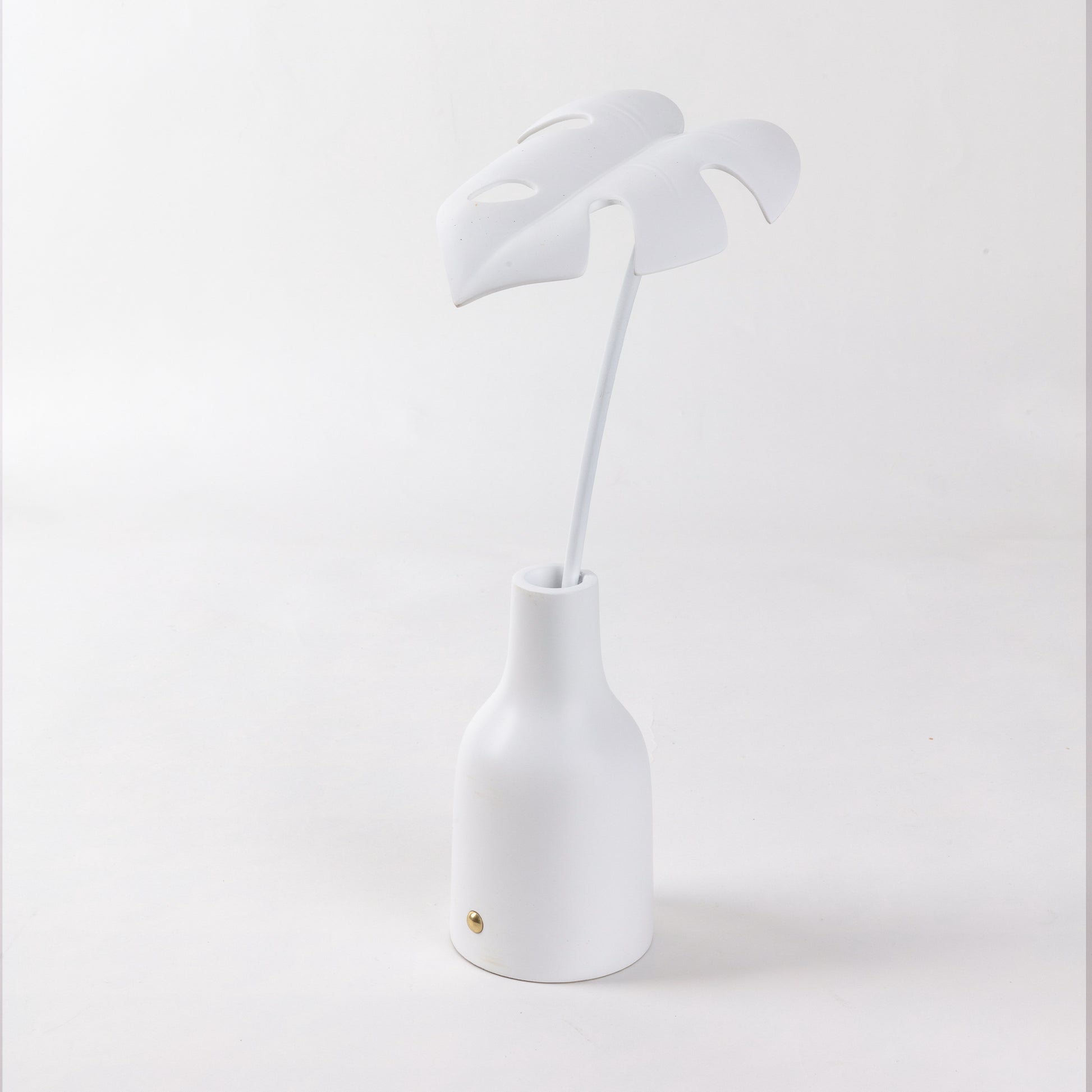 Queste foglie, dettagliate come sculture classiche, hanno un equilibrio formale con il loro vaso e sono un'alternativa elegante nel panorama delle lampade da tavolo. Il rapporto tra luce e piante mi ha sempre affascinato attraverso la meraviglia della fotosintesi, allo stesso modo il soggetto vegetale e l'illuminazione hanno creato una combinazione molto intrigante nel mio immaginario.