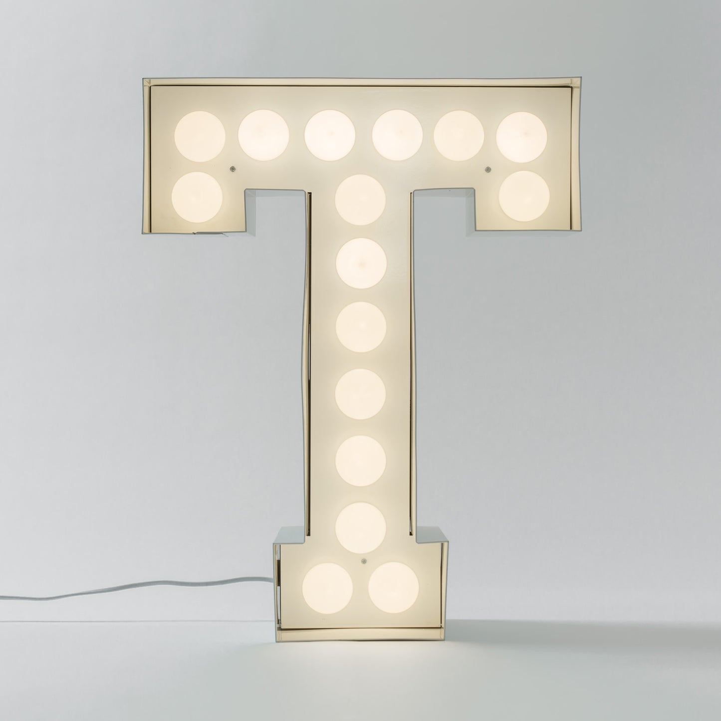 A theatrical sign for a great lighting message. Vegaz, big size metal letters created with a series of light bulbs. For thoughts and words that have an important place in your life.